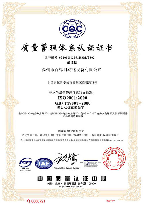 质量管理体系证书