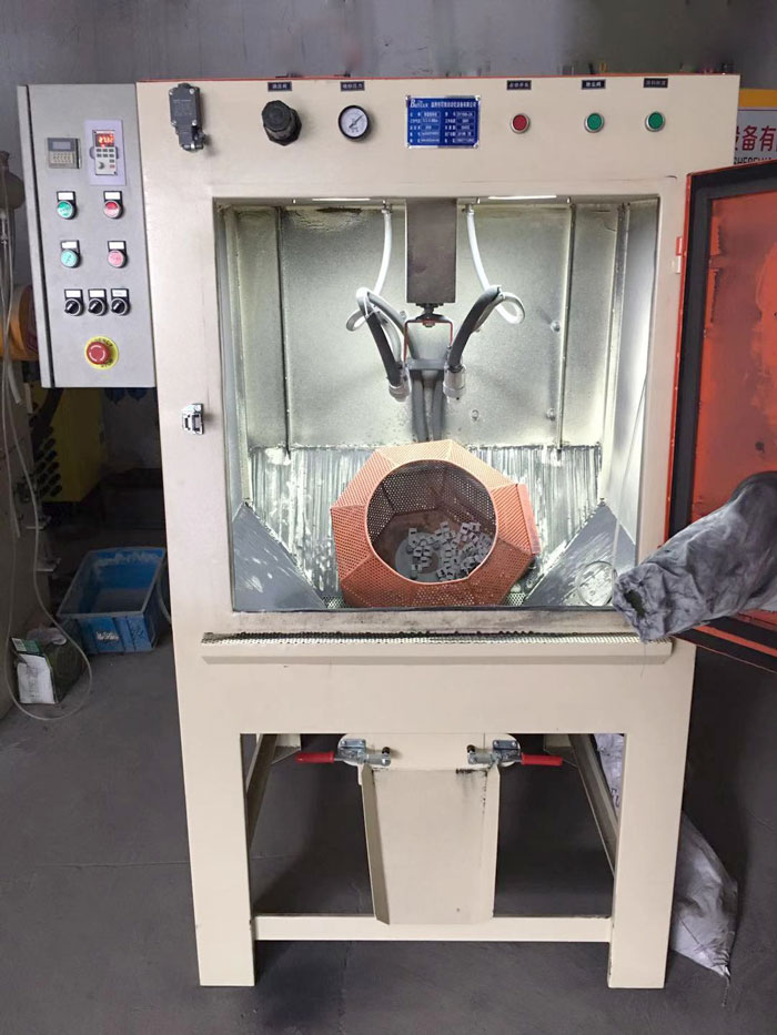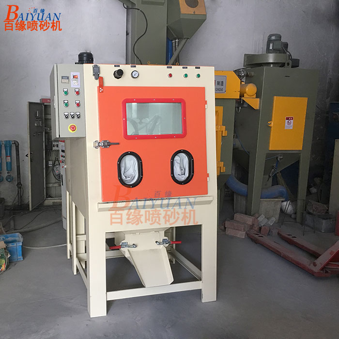 5、喷砂机金属零件的基本不受损坏,尺寸精度不会改变,零件表面不受污染,磨料不会与零件的材为发生化学反应;