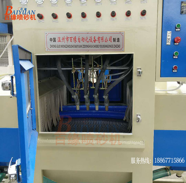 此输送式自动喷砂机设计原则是以贵公司铝产品的表面加工处理为主要,环保及自动化操作为重点,追求产品的表面清洁美观的效果。