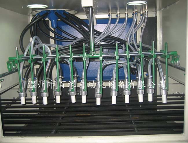 本机配置喷枪支架,可根据需要调节,采用双向变频调整,输送速度可调节。