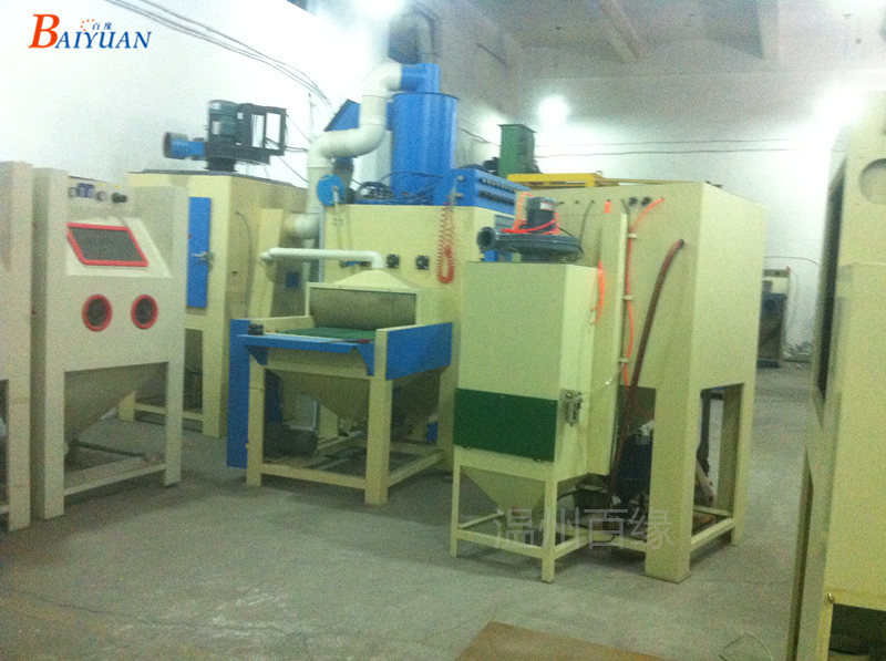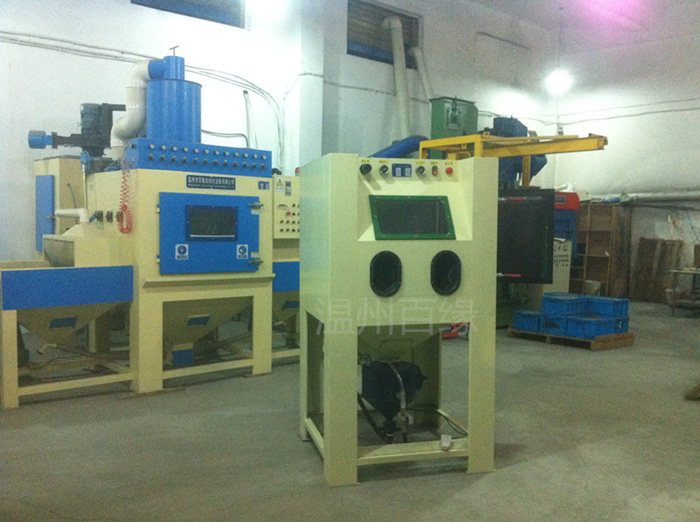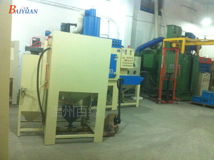 1.机壳采用2.5-6.0mm冷扎钢板焊接制成,表面喷塑,喷砂区和吹净区的关键部位贴有硅胶皮,机器坚固好用。机器为分体:(机器主箱体,除尘箱,旋风分离加压罐)