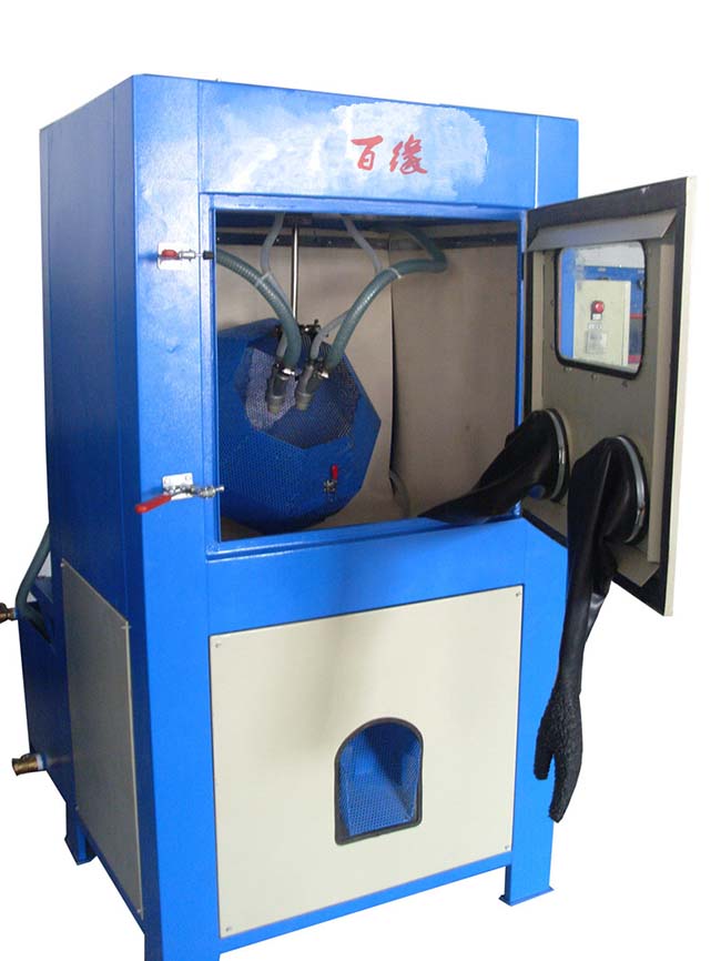 喷砂机应安装在地夹带坚实的地面上,不需要地脚螺栓。连接气源及电源,按按键开关使用便可自动喷砂清理。