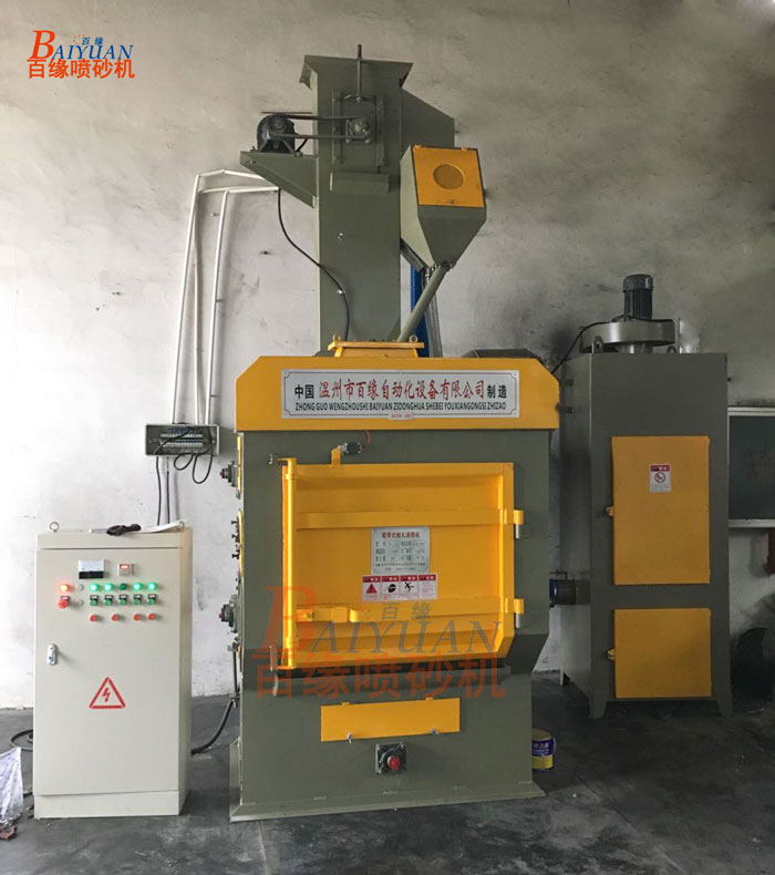 百缘履带式抛丸清理机主要有抛丸器、抛丸室、丸砂提升分离机构,除尘机构,电器控制系统等组成。抛丸器内腔、抛丸器叶片、抛丸室内壁均用高铬耐磨的铸铁作为内墙衬板,以提高使用寿命。